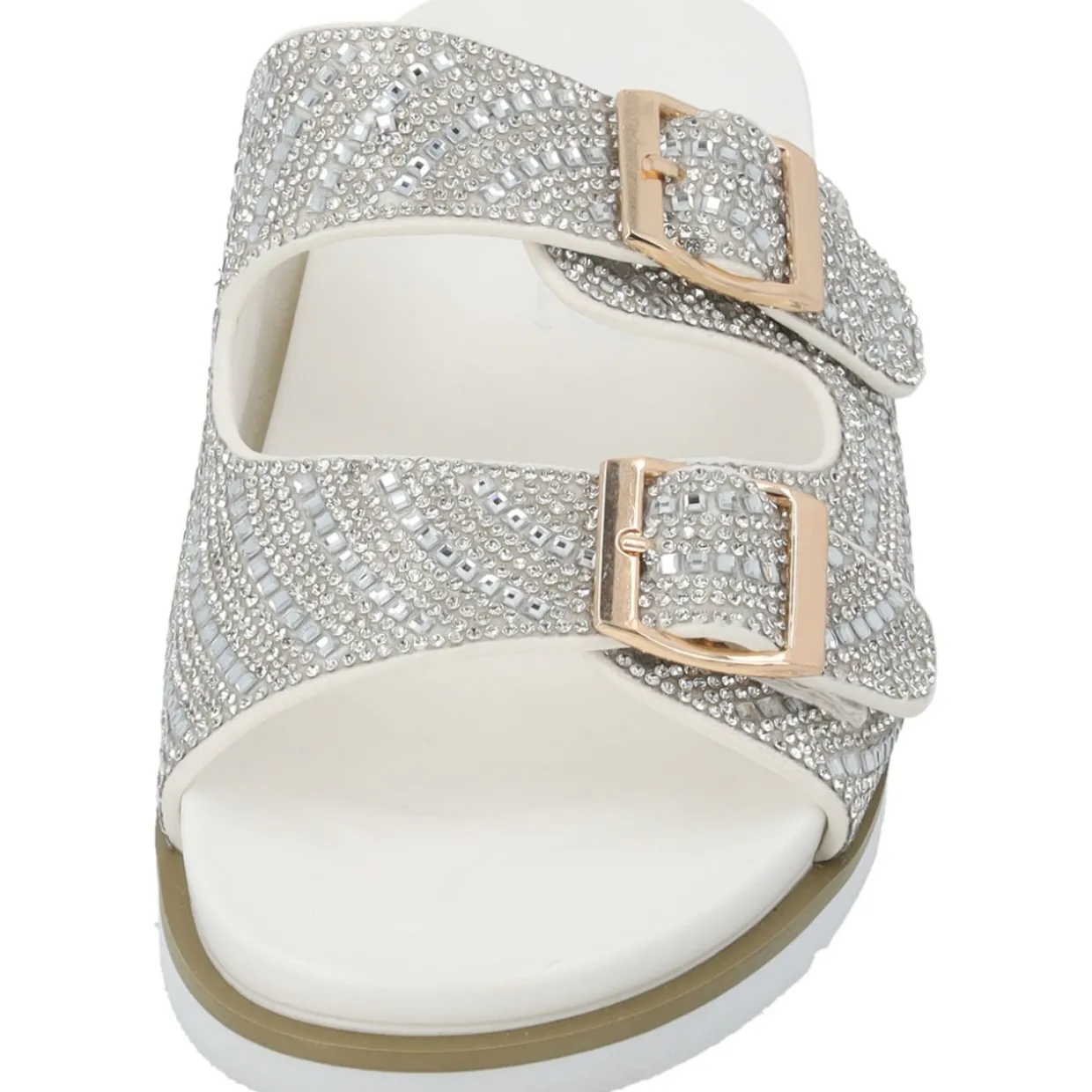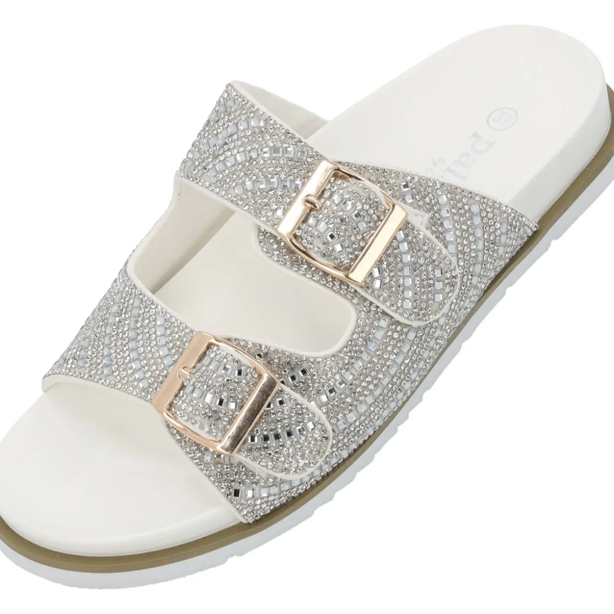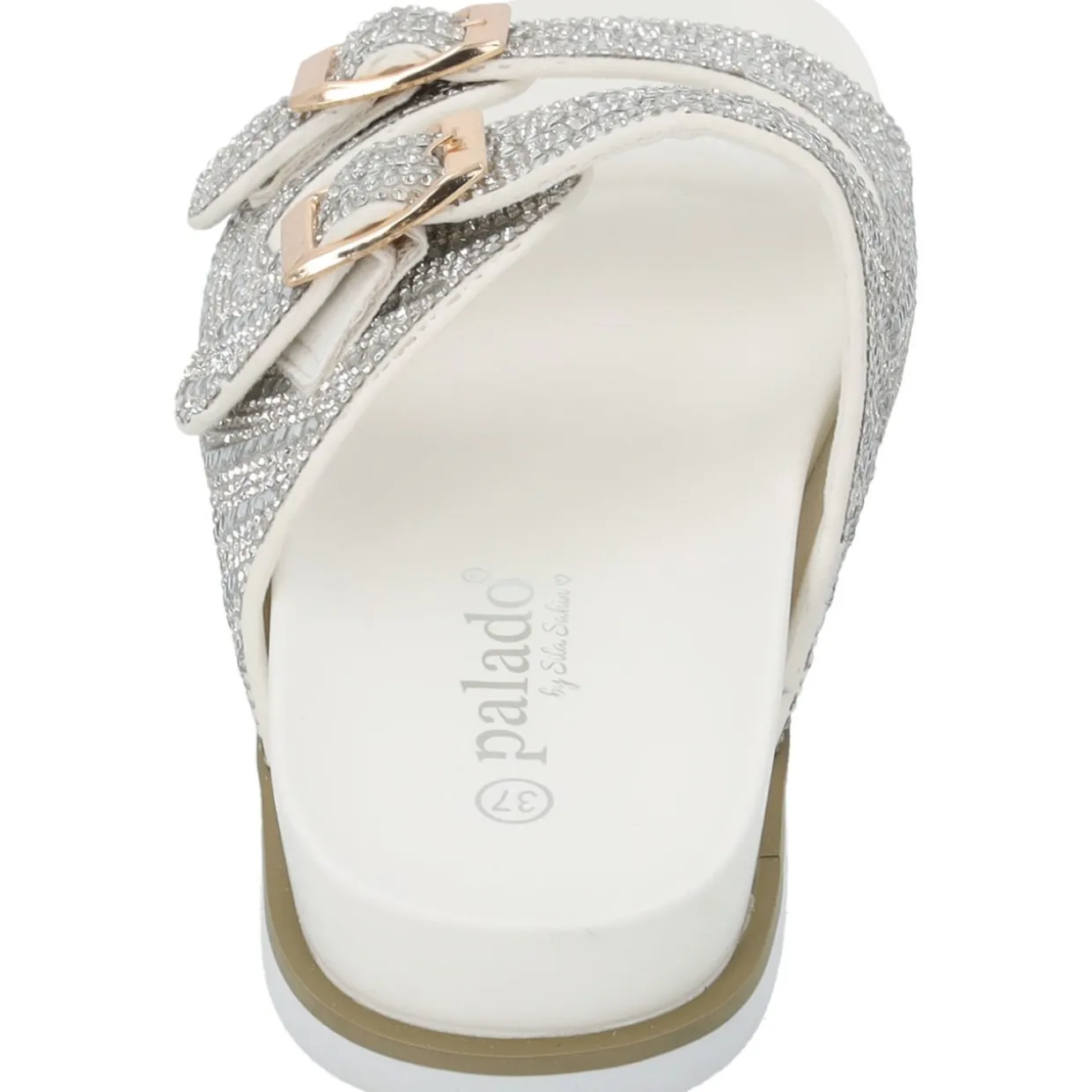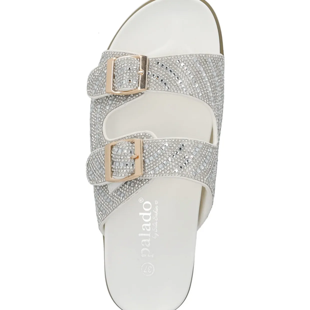 Das Modell „Palado Tegma“ by Sila Sahin ist eine Zweiriemer-Sandale, die mit ihrer Glitzeroptik sofort ins Auge fällt. Die funkelnden Riemen schimmern bei jedem Schritt, während die Schnallen die Möglichkeit bieten, die Passform individuell anzupassen. Diese Sandale kombiniert Komfort mit einem Hauch von Luxus und ist damit die perfekte Wahl für alle, die auch an warmen Tagen stilvoll und elegant auftreten möchten.