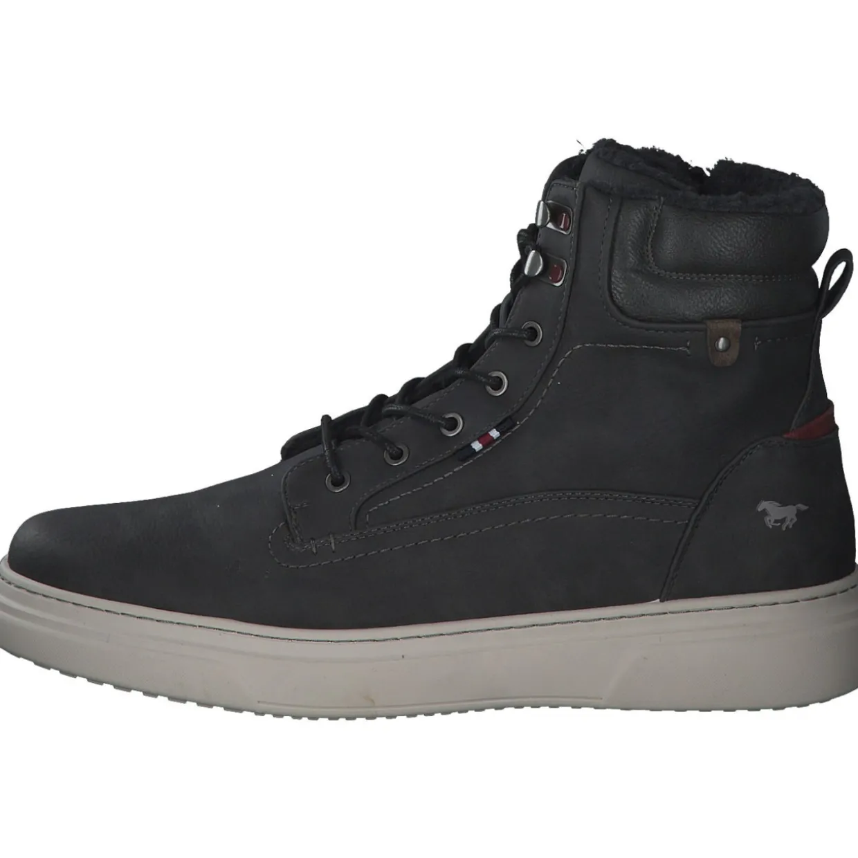 Die Gummi- /Synthetiksohle bietet zudem optimalen Halt, egal wohin du gehst. Die stilvolle Farbe rundet das modische Design ab und macht den Mustang 4181601 zu einem absoluten Must-Have für deine Garderobe.