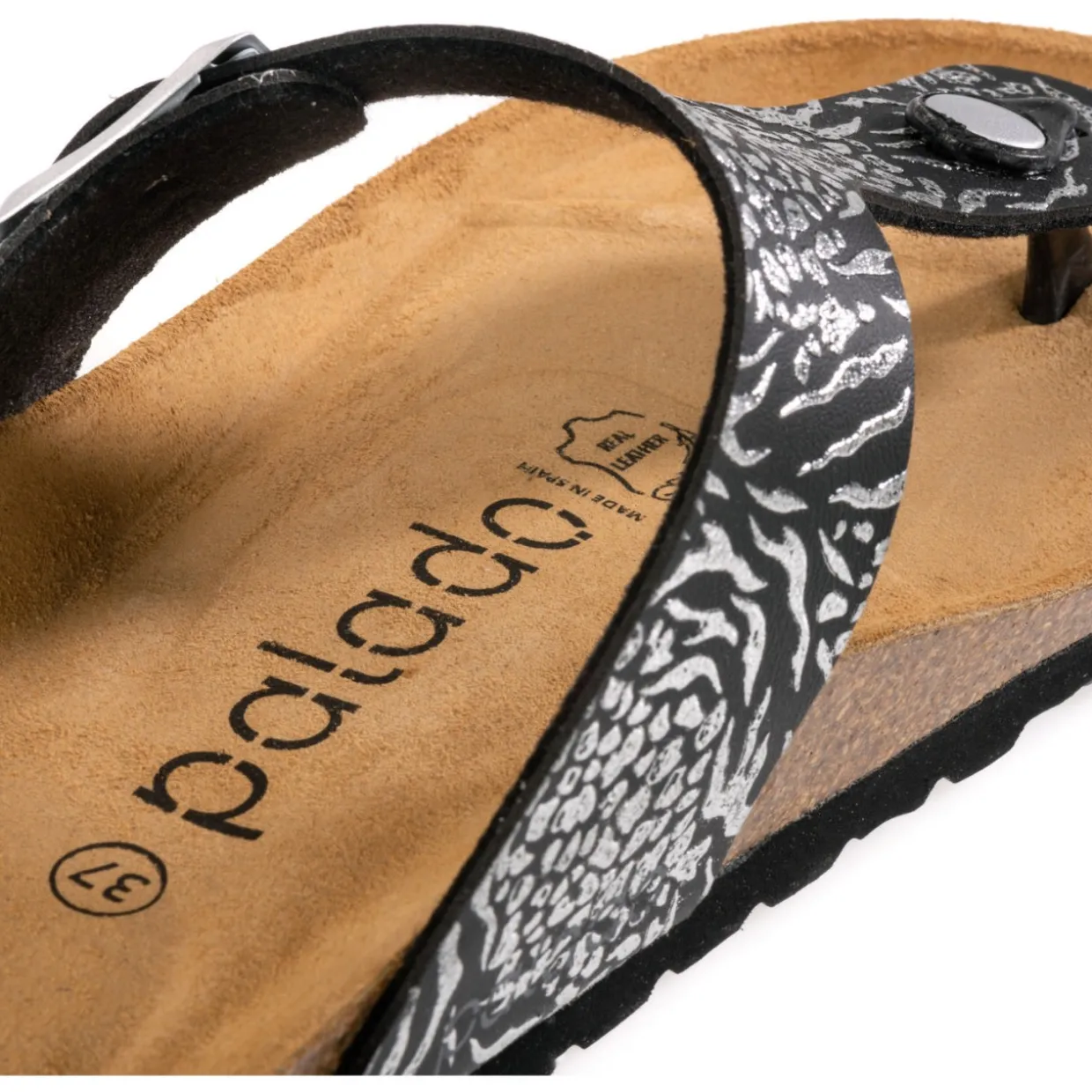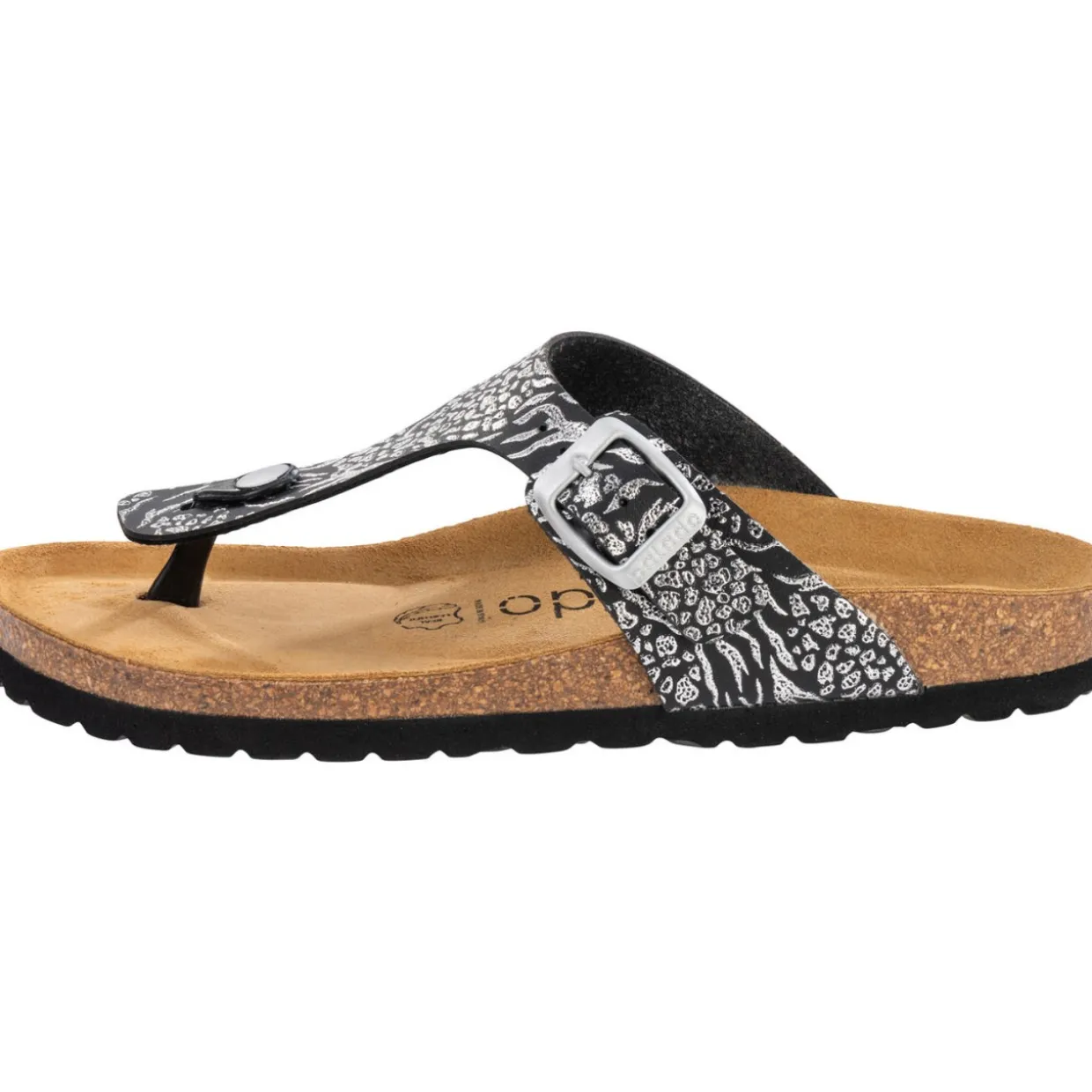 Der Palado „Kos Prints“ mit auffälligem Print-Design verleiht deinem Auftritt eine verspielte Note. Die Decksohle aus weichem Veloursleder schmiegt sich angenehm an den Fuß, während die solide EVA-Laufsohle zuverlässigen Halt auf verschiedenen Untergründen bietet. Mit der verstellbaren Dornschließe für die perfekte Passform und der hochwertigen Verarbeitung in Spanien, bringt diese Zehentrenner-Sandale Abwechslung und Eleganz in deine Schuhsammlung.