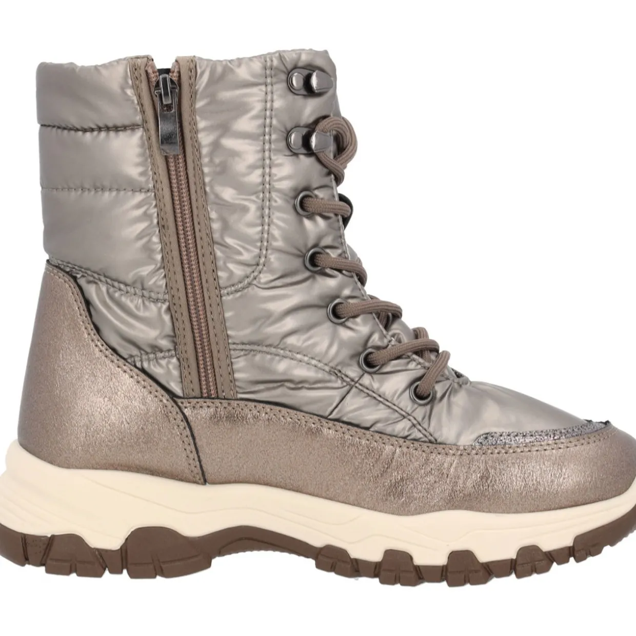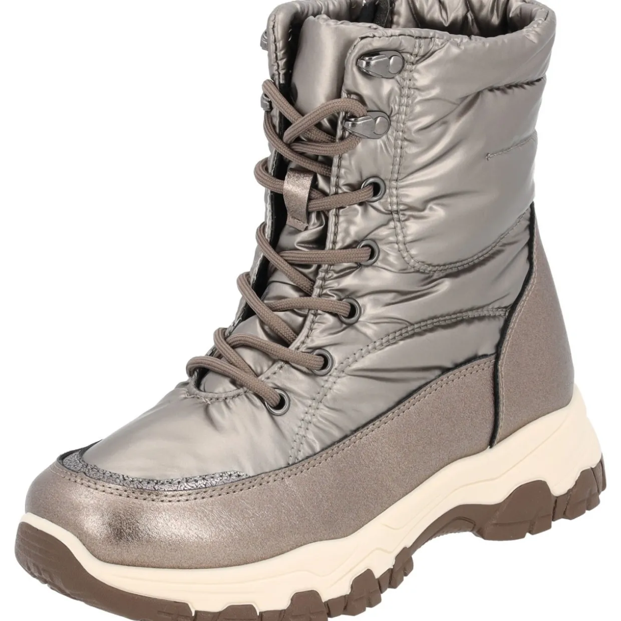 Der Palado Snowboot „Marettimo“ begleitet dich durch die kalten Wintermonate. Mit einer komfortablen Schafthöhe von 15cm (bei Schuhgröße 37) und einem praktischen Reißverschluss an der Innenseite des Schafts sind die Boots nicht nur bequem, sondern auch leicht anzuziehen. Die Schnürung verleiht zusätzlichen Halt und einen Hauch von Raffinesse. Das warme Futter sorgt für wohlige Wärme an kalten Tagen, während die robuste Gummisohle sicheren Halt verspricht. Verfügbar in den Farben Grau, Schwarz und Bronze, ist der Stiefel „Marettimo“ nicht nur funktional, sondern auch ein echtes Mode-Statement.